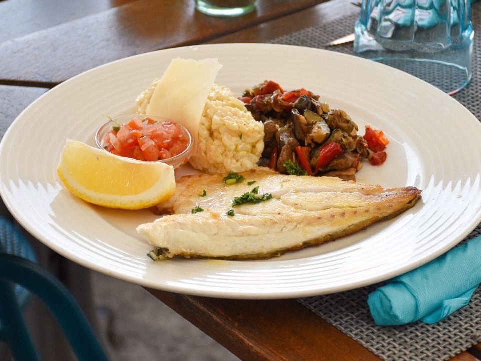 Filet de daurade royale grillé à la plancha, cuisson juste et filet de citron pour sublimer la chair moelleuse. Servi avec risotto crémeux et légumes du jour maison : un plat sain, savoureux et généreux.